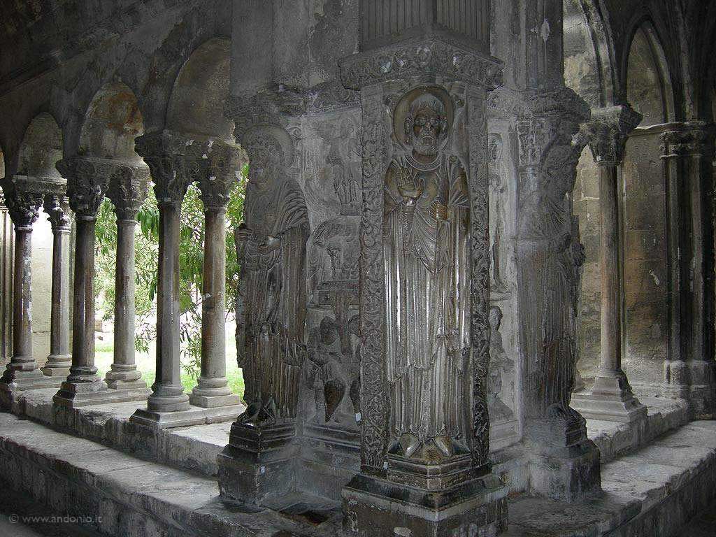 in altorilievo raffiguranti santi e personaggi biblici. Nei locali adiacenti al chiostro sono ospitati dei bellissimi arazzi di manifattura precedente ai Gobelins raffiguranti scene della Gerusalemme Liberata e di vita della Madonna e elementi architettonici del complesso di St Trophime.